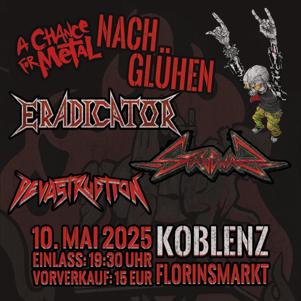 As every time we are looking forward to share the stage again with ERADICATOR and will be thrashing around with DEVASTRUCTION! See you in Koblenz!
